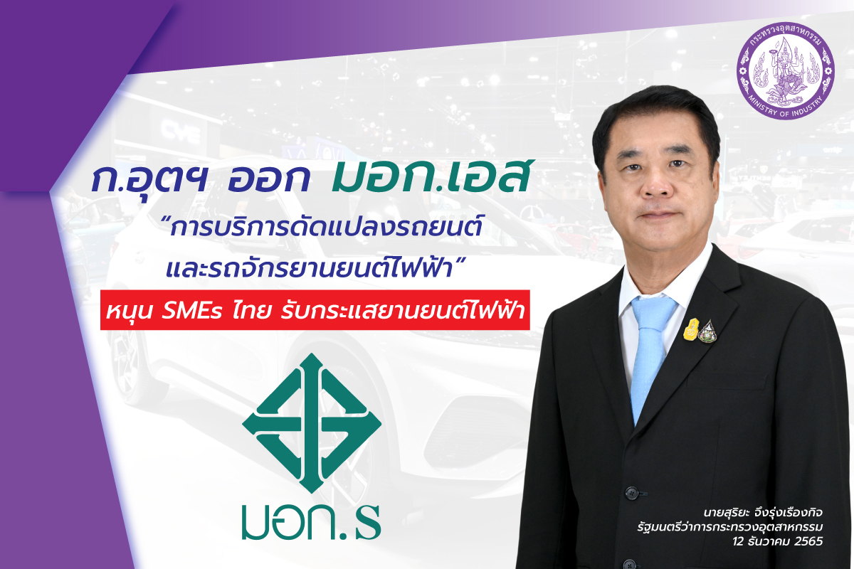 นายสุริยะ จึงรุ่งเรืองกิจ รัฐมนตรีว่าการกระทรวงอุตสาหกรรม เปิดเผยว่า กระทรวงอุตสาหกรรม ได้เร่งรัดให้สำนักงานมาตรฐานผลิตภัณฑ์อุตสาหกรรม (สมอ.) จัดทำมาตรฐานยานยนต์ไฟฟ้าและที่เกี่ยวข้องออกมาอย่างต่อเนื่อง โดยล่าสุดได้ออกประกาศมาตรฐานอุตสาหกรรมเอส หรือ มอก.เอส ซึ่งเป็นมาตรฐานที่กำหนดขึ้นเพื่อให้การรับรองคุณภาพผลิตภัณฑ์และบริการของผู้ประกอบการ SMEs หรือวิสาหกิจชุมชนที่ต้องการเครื่องหมายการันตีสินค้าหรือบริการ เพื่อสร้างความเชื่อมั่นแก่ผู้บริโภค จำนวน 2 มาตรฐาน ได้แก่ การบริการดัดแปลงรถยนต์ไฟฟ้าและการบริการดัดแปลงรถจักรยานยนต์ไฟฟ้า หลังผู้บริโภคให้ความสนใจเปลี่ยนมาใช้ยานยนต์ไฟฟ้าเพิ่มมากขึ้นอย่างต่อเนื่อง ในขณะเดียวกันผู้บริโภคบางส่วนเลือกที่จะนำรถยนต์หรือรถจักรยานยนต์ที่มีอยู่ไปดัดแปลงให้เป็นรถยนต์ไฟฟ้าหรือรถจักรยานยนต์ไฟฟ้า เพื่อประหยัดค่าใช้จ่ายในการซื้อรถไฟฟ้าคันใหม่ จึงนับว่าเป็นโอกาสที่ผู้ประกอบการ SMEs ที่อยู่ในอุตสาหกรรมชิ้นส่วนยานยนต์ หรือ อู่ซ่อมรถต่าง ๆ จำนวนหลายร้อยรายในประเทศ จะได้มีโอกาสพัฒนาศักยภาพการให้บริการ และมีเวลาปรับตัวเพื่อเข้าสู่อุตสาหกรรมยานยนต์ไฟฟ้าในอนาคต และหากพัฒนาจนได้รับการรับรองมาตรฐานการบริการดัดแปลงรถไฟฟ้า ก็สามารถสร้างโอกาสเติบโตทางธุรกิจดัดแปลงรถยนต์สันดาปเป็นรถยนต์ไฟฟ้า (EV Conversion) ได้