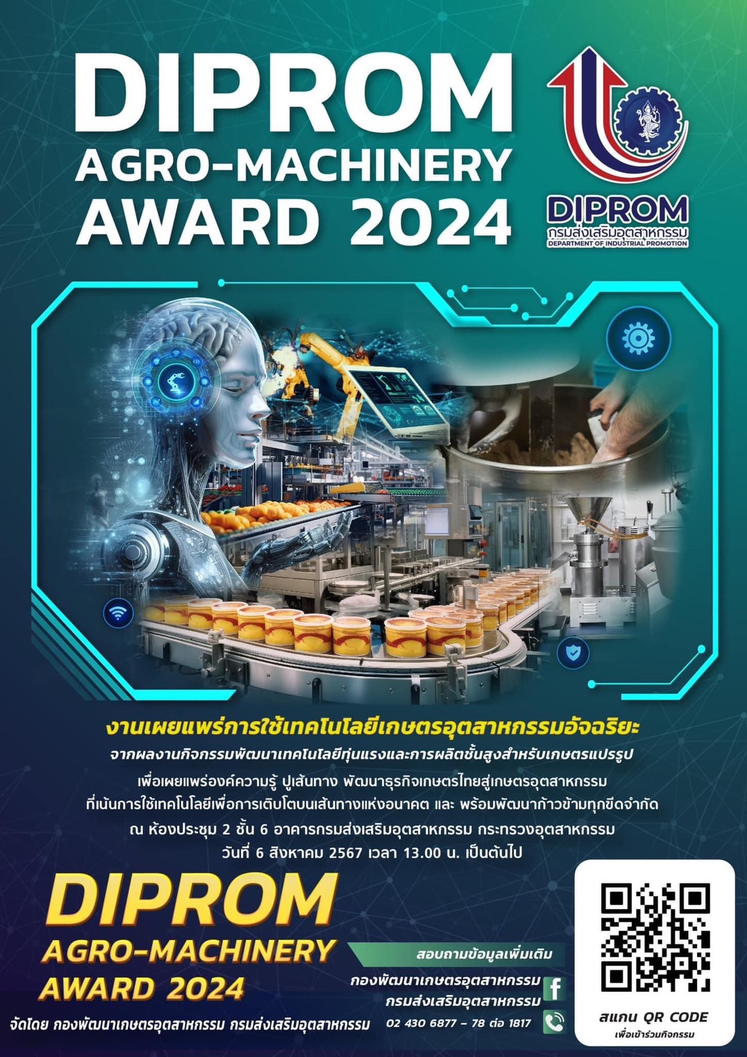DIPROM Agro-Machinery Award 2024 ดีพร้อม ขอเชิญผู้สนใจเข้าร่วมงานเผยแพร่การใช้เทคโนโลยีการเกษตรอุตสาหกรรมอัจฉริยะ 2567 DIPROM Agro-Machinery Award 2024